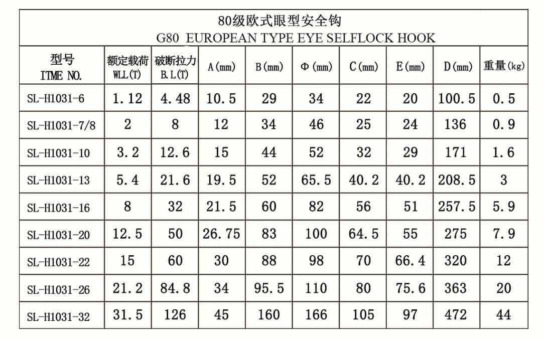 80级欧式眼型安全钩